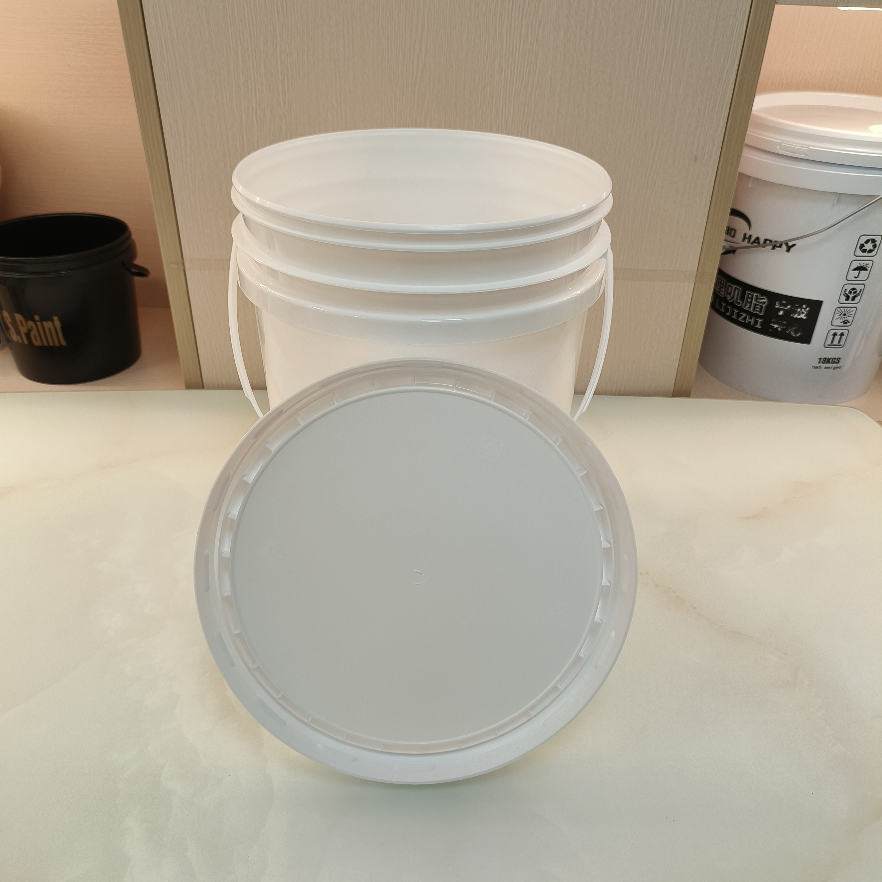 كل دلو بلاستيكي يبلغ وزنه 5 غالونات يتم تعبئته بعناية في صندوق كرتوني صلب لضمان التسليم الآمن لعملائنا